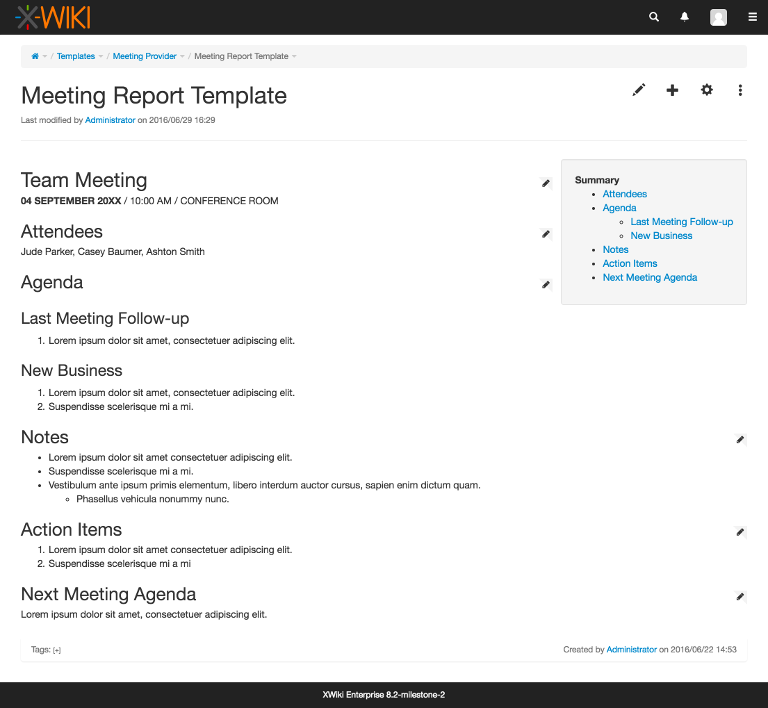 Want to start from a predefined template? Here are some examples of available templates inside XWiki